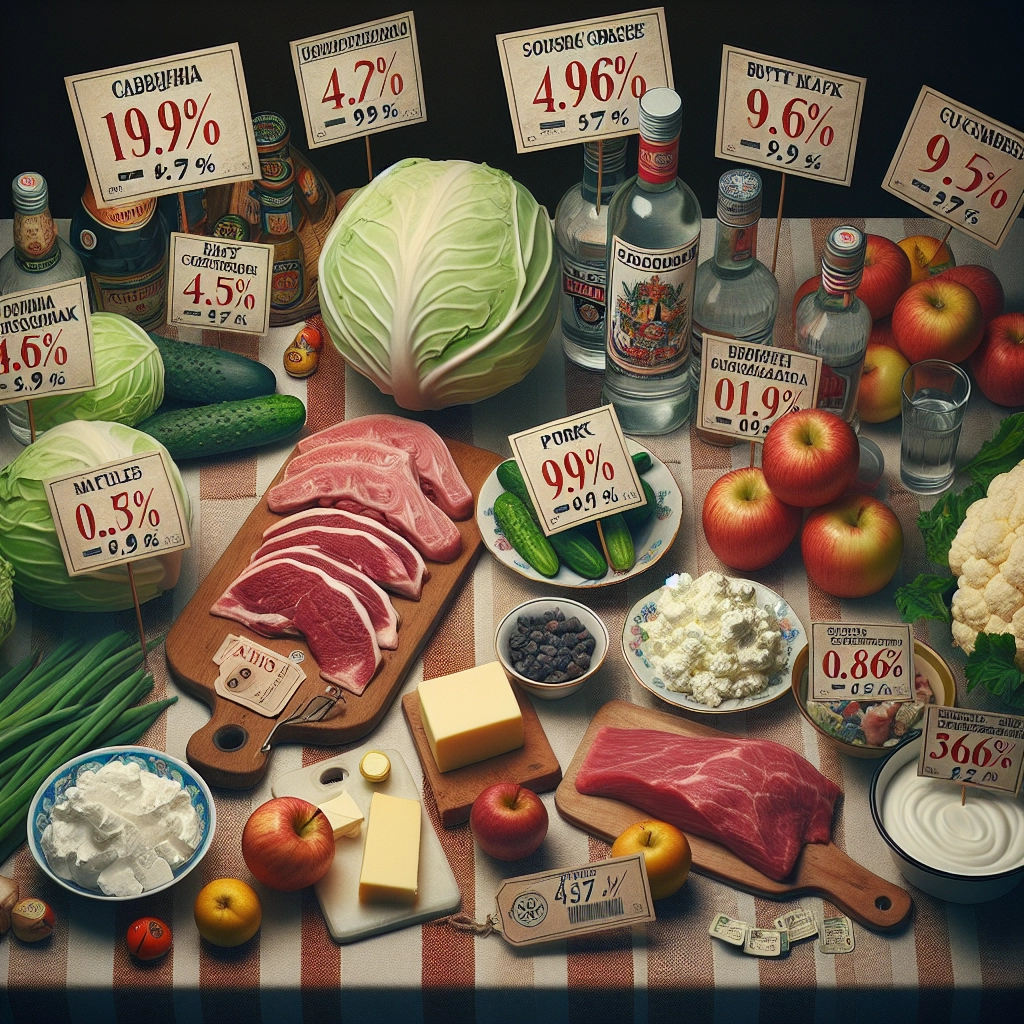 Динамика по молочным продуктам в ноябре носила смешанный характер: сливочное масло подешевело на 0,54%, сметана — на 0,27%, творог остался практически в прежней ценовой зоне. Среди алкогольной продукции водка заметно не подорожала — наблюдалось небольшое снижение на 0,36%.