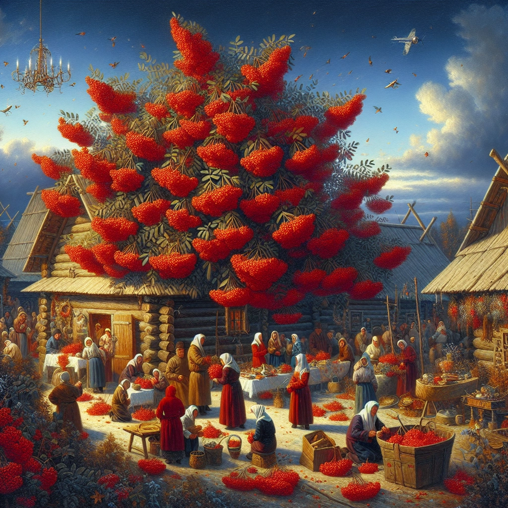 Рябина в народной культуре выполняла роль защитного растения. Ветки рябины развешивали в избе над входом, ставили рядом с иконами или в углах комнат. Считалось, что рябина помогает защищать семью от болезней, сохранять молодость и пригождать богатство — формулировка таких ожиданий в фольклоре может звучать по-разному, но общая идея — защитная и магическая роль растения. Девушки нередко снимали кисть рябины и подсчитывали количество ягод: четное число считалось знаком удачи в любви или скорого исполнения желания, нечетное — предвестником перемен.